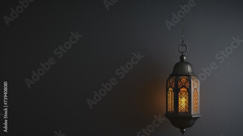 A Ramadan Kareem background for Islamic template design featuring a minimalist hanging lantern and ample copy space