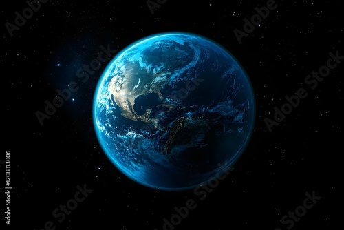 A realistic Earth, floating in space and surrounded by stars and galaxies, symbolizes the vastness of our planet's environment