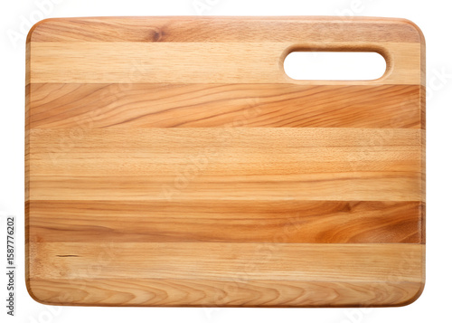 A rectangular wooden cutting board with a handle, isolated on a transparent background