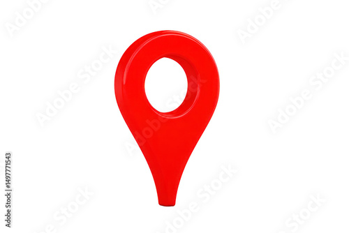 A red 3d map pin icon with glossy finish, isolated on transparency background, symbolizing location or navigation