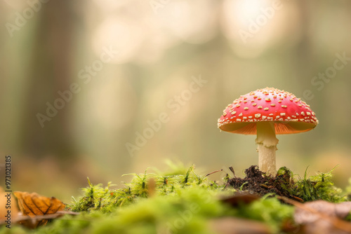 A red amanita mushroom in a forest, capturing wild beauty and autumnal ambiance.