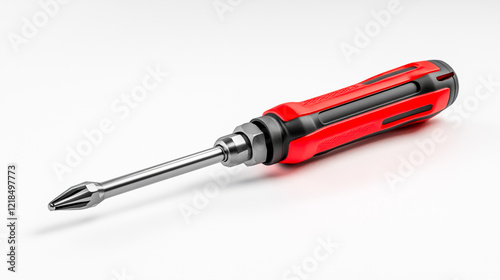 a red and black hex-head screwdriver with white background.