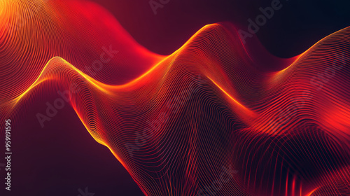 A red and orange wavy pattern with sharp lines against a dark background. It looks futuristic and modern.