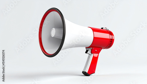 A red and white megaphone stands out against a plain background, symbolizing communication, announcements, or calls to action