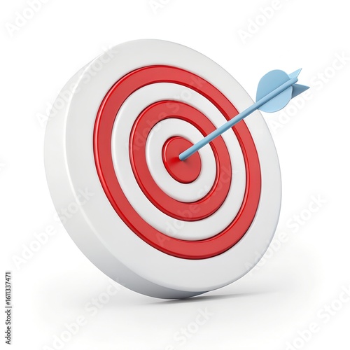 A red and white target with an arrow hitting the bullseye, representing goal achievement and success