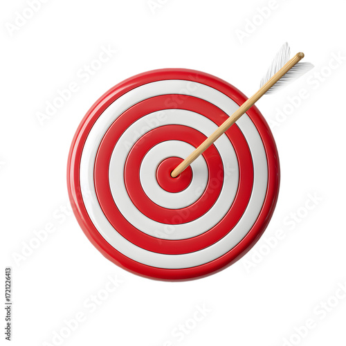 A red and white target with an arrow hitting the bullseye, symbolizing success and accuracy isolated on transparent background