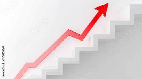 A red arrow on a white background with a ladder in the form of an ascending graph, symbolizing the success or growth of a business