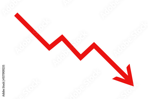 A red arrow points downwards, indicating a negative trend and financial loss isolated on white background