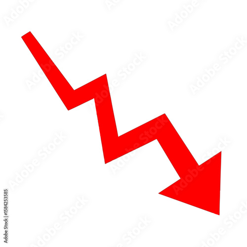 A red arrow zigzags downward, indicating decline, isolated on white background