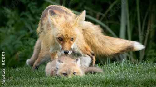 A Red Fox Family on the grass