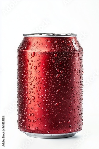 A red soda aluminum can with water droplets, with no label, to use for a mockup isolated on white background.