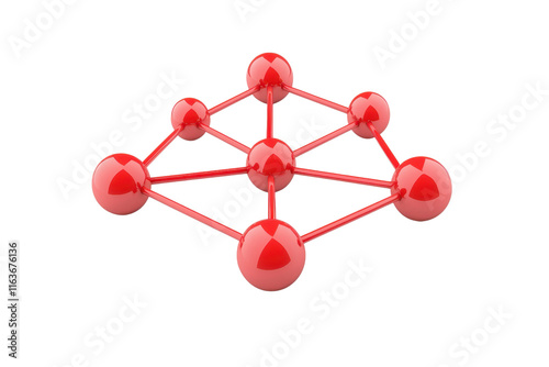 A red spherical molecular structure connected by lines, illustrating a network or bonding.