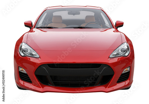 A red sports car, isolated on transparent background, is shown in a front view, showcasing its sleek design and glossy finish