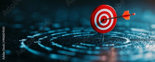 A red target with an arrow accurately hitting the center, symbolizing precision, success, and goal achievement.