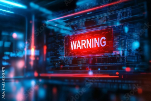 A red "WARNING" flashing on a computer screen, surrounded by a faint glow, representing an urgent security alert in a digital environment.