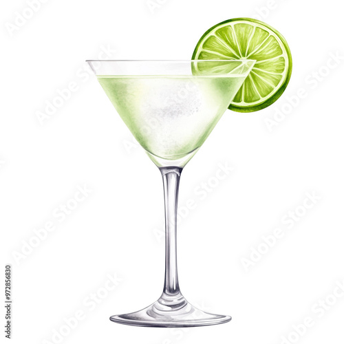 A refreshing cocktail with a lime slice, ideal for summer gatherings and celebrations. Perfect for bar and party themes.