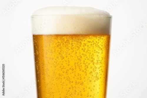 A refreshing glass of beer with a frothy head, showcasing the golden hue of the amber liquid and the bubbles that hint at its crisp taste