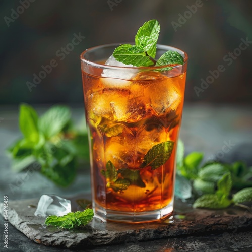 A refreshing glass of iced tea with mint