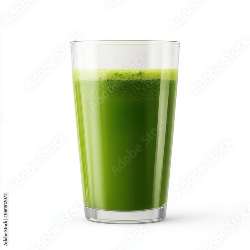 A refreshing green juice in a clear glass, showcasing a smooth texture and vibrant color, ideal for healthy detoxification and nutrition.