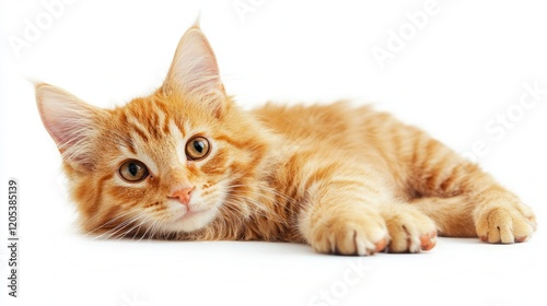 A relaxed cat is comfortably lying on a smooth floor, showcasing its calm demeanor and serene surroundings.