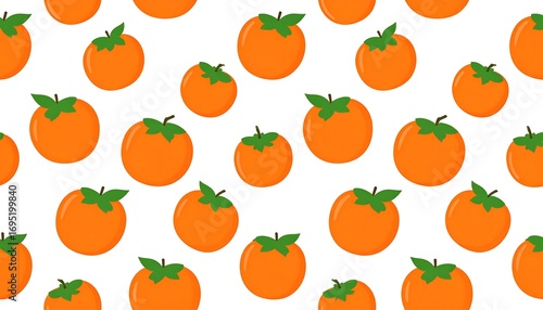 A repeating pattern of bright orange fruits with green leaves, set against a plain white background.