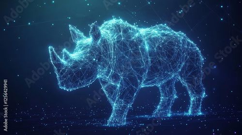 A rhino hologram. A rhinoceros made of polygons, triangles of points and lines. Rhinoceros low-poly compound structure. The technology concept.