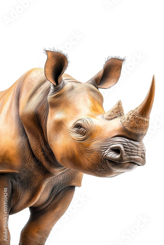 A rhinoceros standing proudly, isolate on white background, highlighting its impressive size and unique features. cutout png