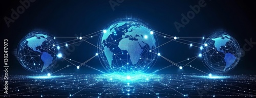 A rich blue tech background featuring interconnected networks and digital data links, ideal for a web banner or social media promotion of a tech product or service, complete with a radiant effect