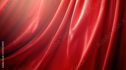 A rich, flowing red curtain drapes elegantly, showcasing smooth folds and a lustrous texture, illuminated by soft light.