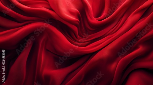 A rich, textured red fabric drapes elegantly, showcasing luxurious folds and a smooth sheen.