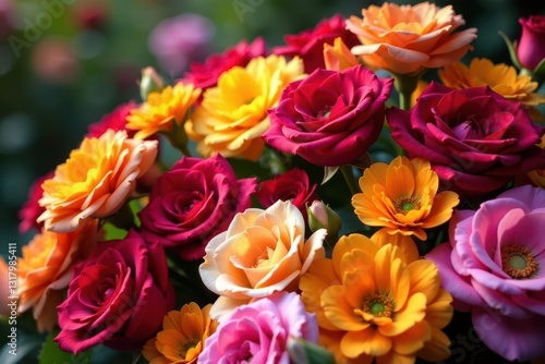 A riot of color; fragrant jasmine, marigold, roses piled high , bright, asia, beautiful