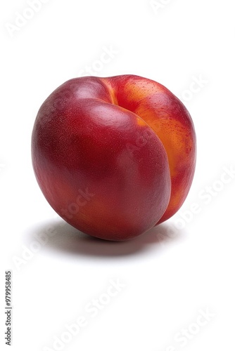 A ripe peach sitting on a clean white surface, ready for consumption or decoration