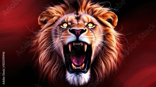 A Roaring Lion With Fierce Eyes Set Against a Dramatic Dark Background