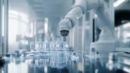 A robot performing automated quality checks on luxury consumer electronics in a high-tech production facility, clean and precise environment, Electronics-quality-tech style