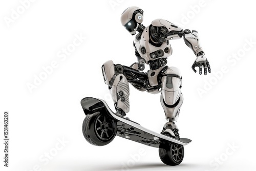A robot riding a hoverboard png white background