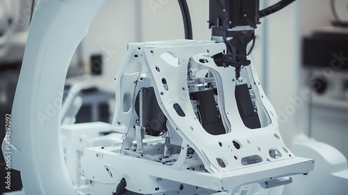 A robotic arm in a futuristic factory, assembling components for robots used in autonomous smart home device manufacturing systems, Home-tech style