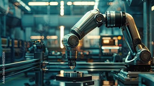 A robotic arm in a high-tech manufacturing environment, performing precise tasks.