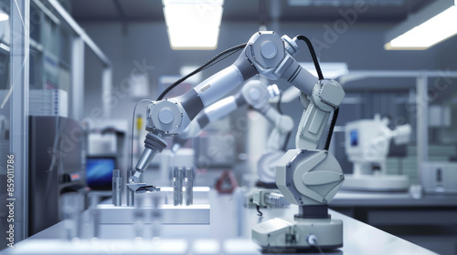 A robotic arm precisely handling samples in a high-tech laboratory, symbolizing innovation and advanced biotechnology.