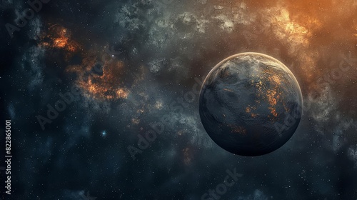 A rocky exoplanet with rugged terrain and a thin atmosphere, seen from space,