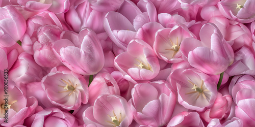 a romantic photography style seamless pattern of pink tulips. super fresh, and coverd with dewdrops, creating romantic atmosphere.