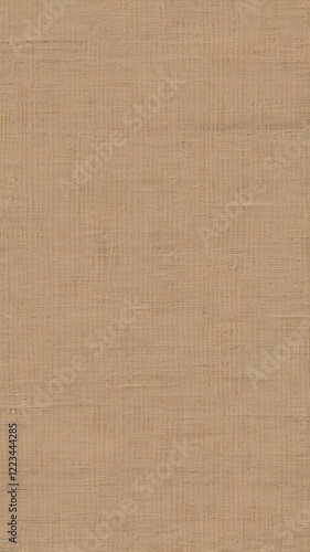 A rough textile background made of jute fibers with uneven weaving patterns and frayed edges, in natural beige tones.