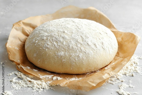 A Round Dough Ball Covered in Flour, Resting on Parchment Paper