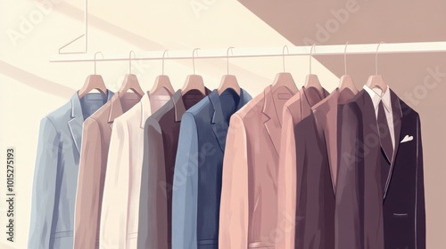 A row of suits hanging on a rack, showcasing a range of colors and styles.