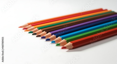 A row of brightly colored pencils, perfect for drawing and creative projects.