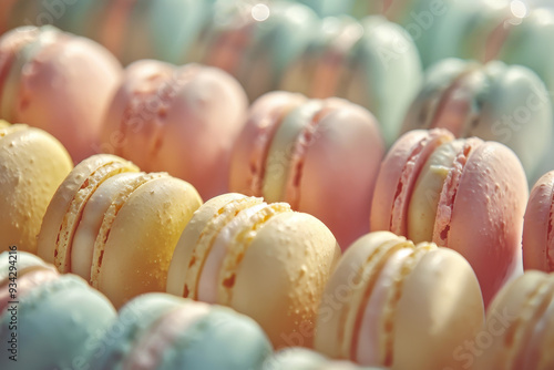 A row of colorful macarons with different flavors