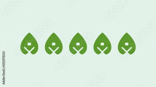 A row of five simplistic green leaf icons, symbolizing nature and growth. The clean design exudes freshness and sustainability.