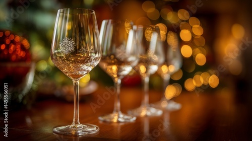 A row of wine glasses on a wooden table, celebrating warmth and togetherness