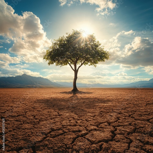 A rugged landscape unfolds where dry, cracked earth reveals its intricate patterns in shades of brown, accentuated by deep crevices—nature's testament to resilience in desolation