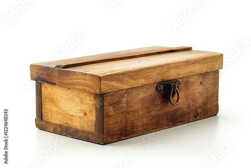 A rustic wooden box resting on a white surface, showcasing craftsmanship and simplicity in design, perfect for storage or decoration isolated on transparent background