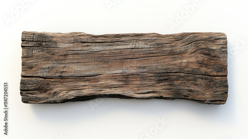 a rustic wooden signboard, aged wood with deep mahogany tones and polished grain, rough but clean-cut edges, standing against a clean white background, subtle highlights on the edges to emphasize dept